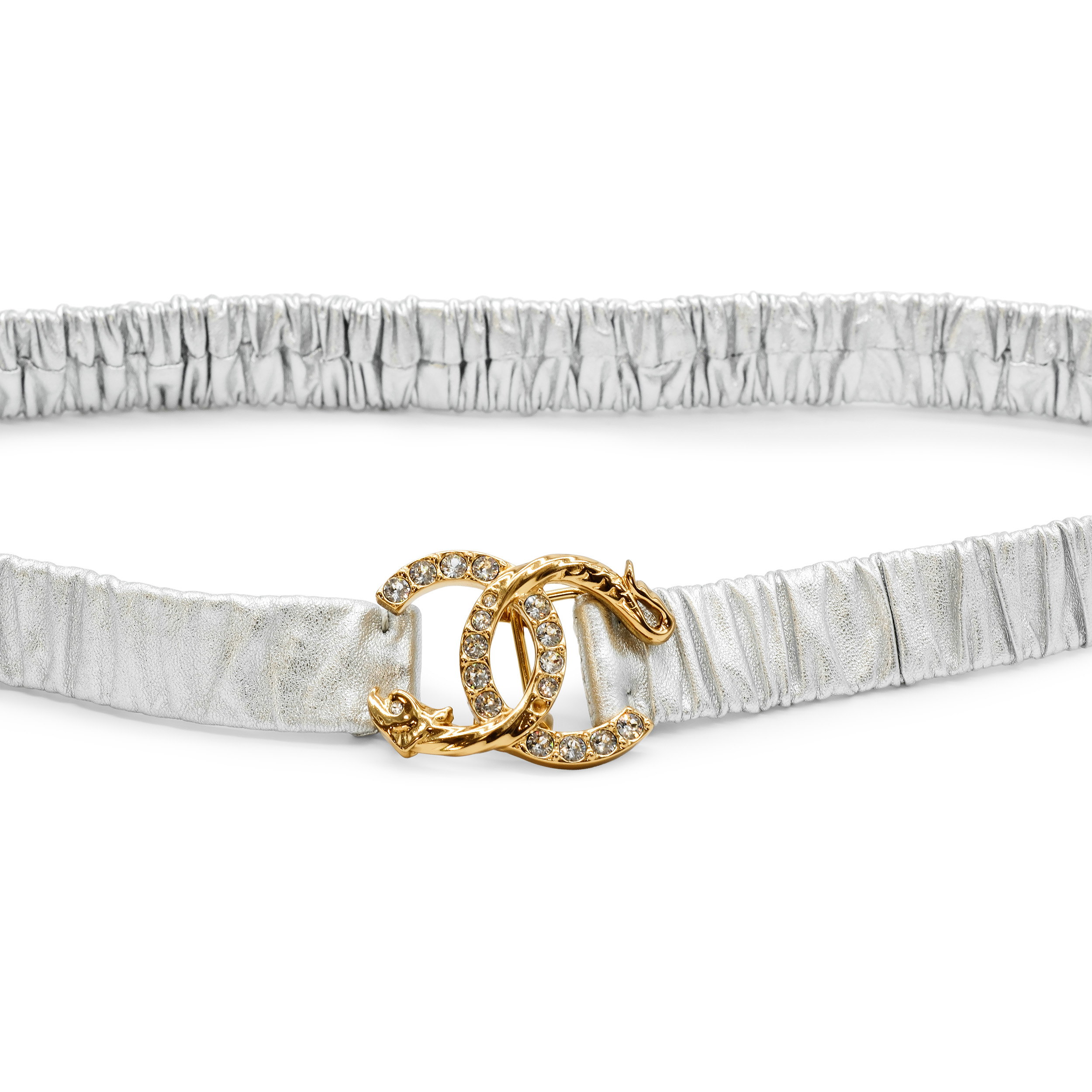 This Chanel belt is crafted in leather and features 'CC' logo with crystal embellishments.